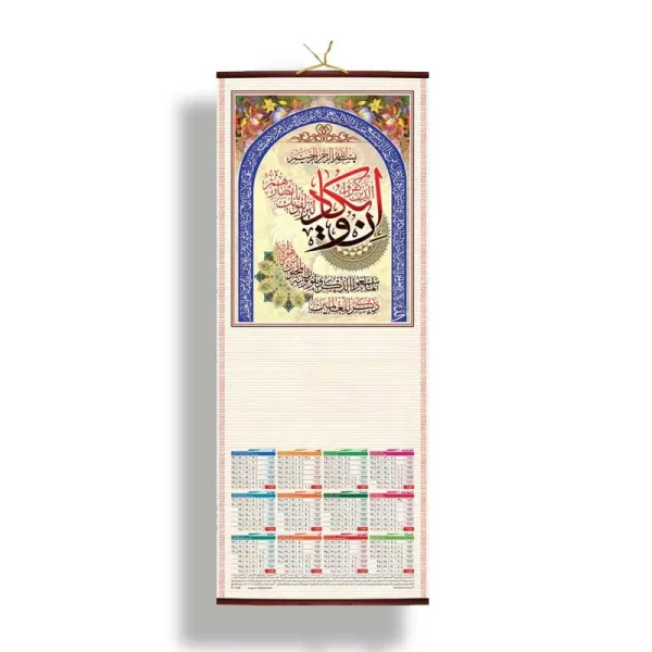 تقویم دیواری حصیری چینی 1405 با ظاهری بسیار زیبا و ماندگاری بالا در طرح مذهبی.